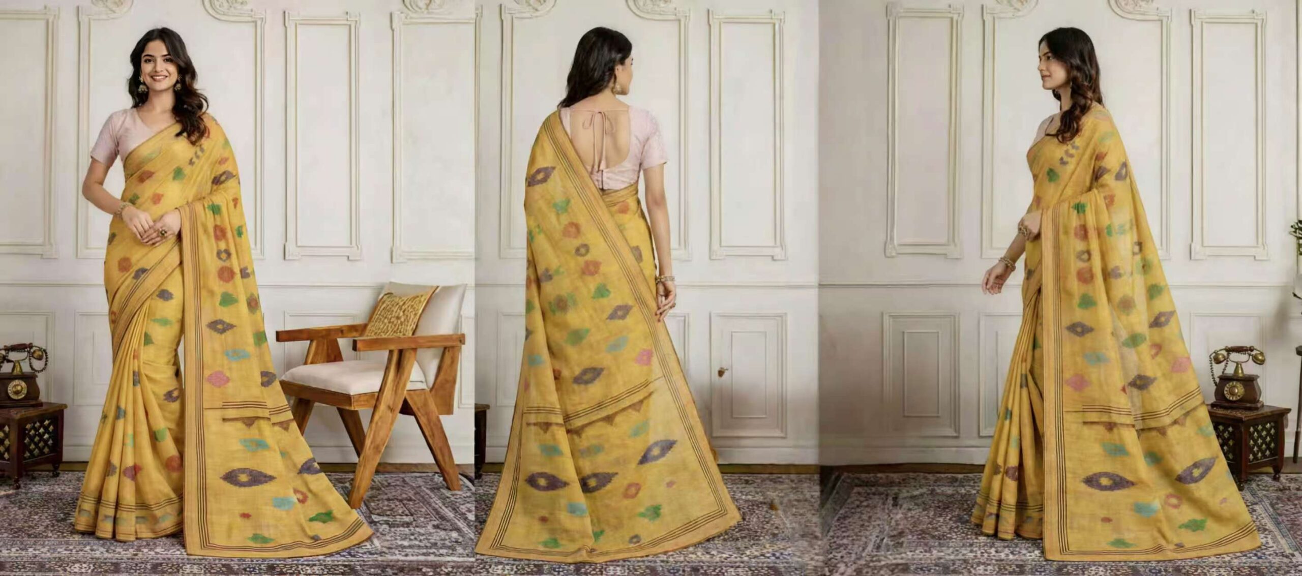 This black colored Tangail Soft Jamdani saree is very comfortable to wear. Its texture and finishing are very premium. It is a perfect saree to wear for any formal event or home function. Beautiful black color as in the picture!