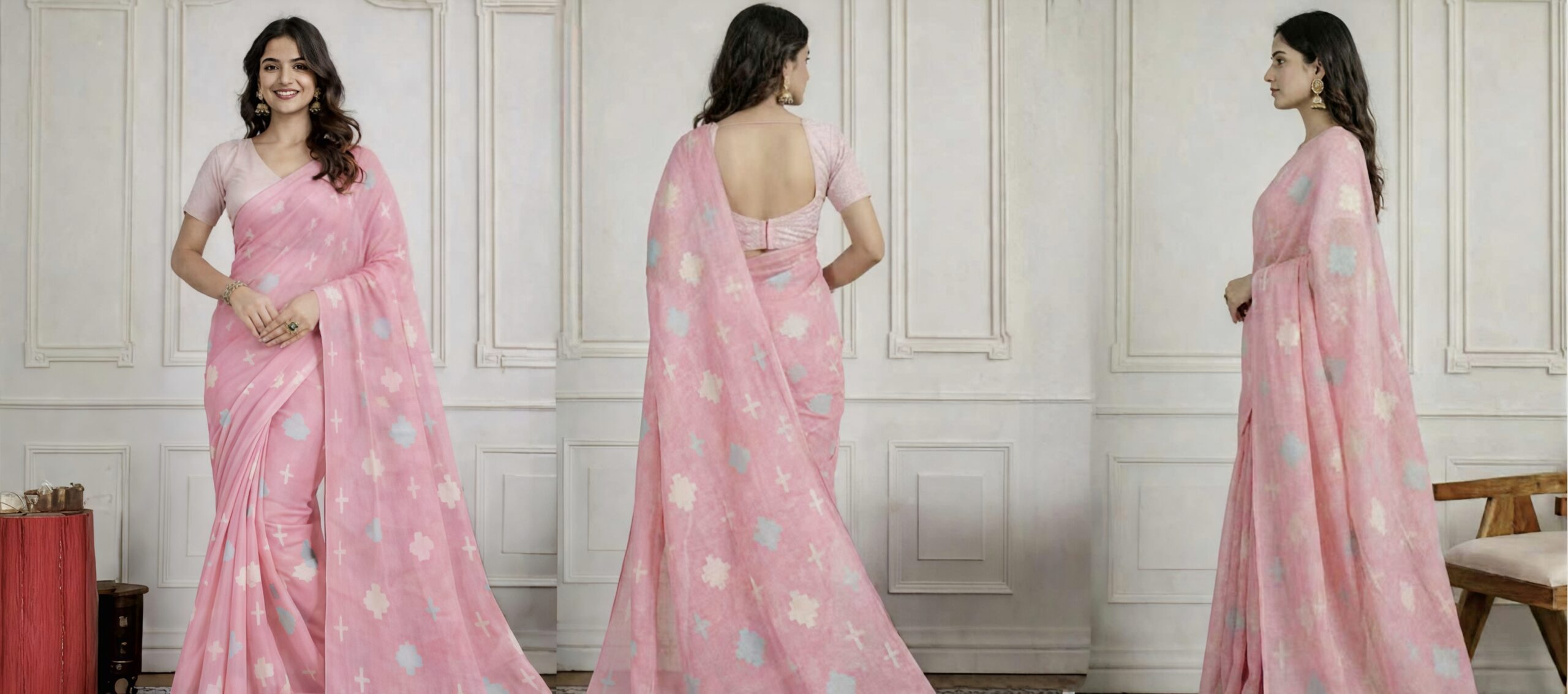 This Jamdani saree in baby pink color is truly amazing. The handloom work on it is very perfect and elegant. The saree is very comfortable to wear, especially for any occasion. Thank you to the Ch. Wicked cute...