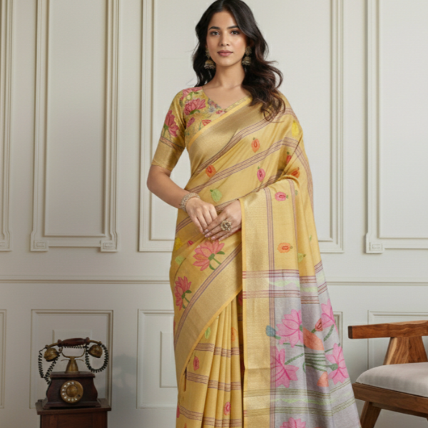 The Jamdani saree is absolutely stunning! The handloom work is very fine, and the lavender color looks even better in person. Very comfortable to wear. Wicked cute...