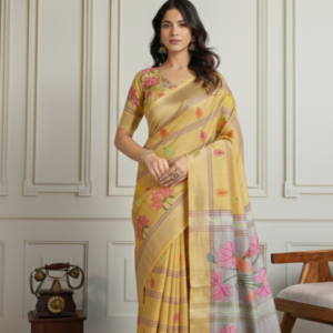 2,500.00৳Color: Mustard Yellow (Shorisha Holud). ​Material: High-quality Soft Cotton. ​Workmanship: Traditional Tangail Handloom with "Butti" design. ​Weight: Lightweight and easy to drape. ​Care: Hand wash with mild detergent or dry clean for longevity. -