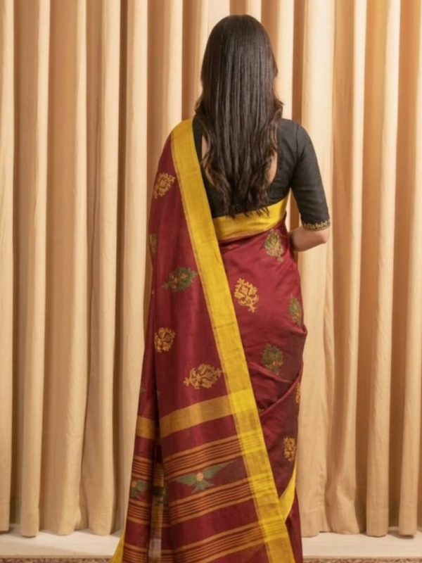 4,800.00৳Product: Premium Manipuri Handloom Cotton Saree. ​Material: 100% High-quality breathable cotton. ​Colors Available: Deep Maroon and Vibrant Sea Green. ​Design: Traditional Temple Border (Mandir design) with handcrafted buti motifs. ​Occasion: Daily office wear, cultural programs, and elegant gifting. -