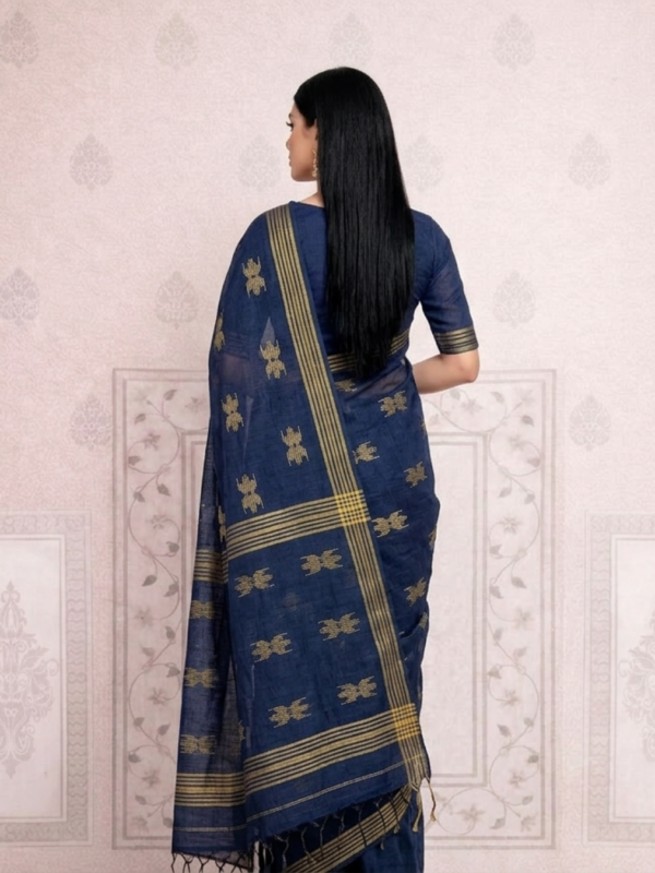 Navy Blue with Golden Work Traditional Monipuri Handloom Saree