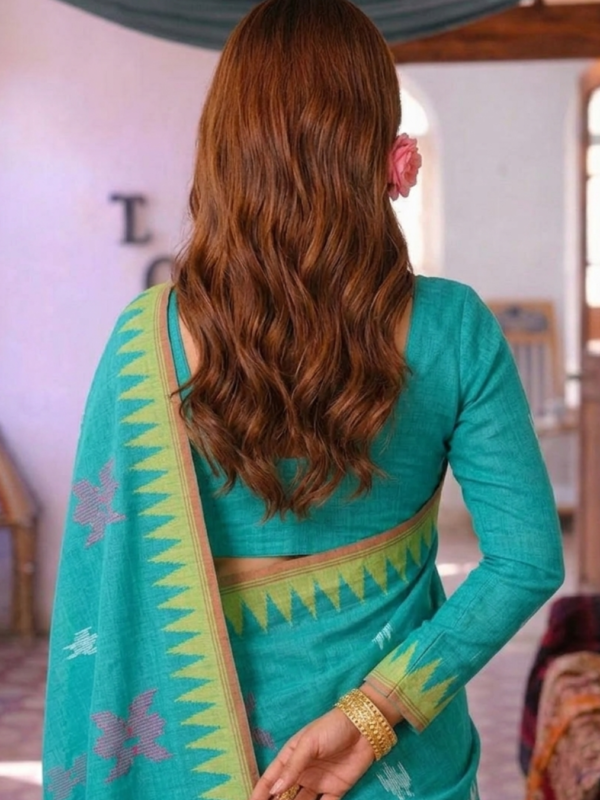 3,300.00৳​Product: Authentic Monipuri Handloom Saree. ​Material: 100% Premium Cotton for maximum comfort. ​Color: Vibrant Sea Green with multicolor hand-woven motifs. ​Design: Signature Temple Border (Mandir design) and elegant 'Buti' work. ​Occasion: Perfect for office wear, traditional festivals, and casual outings. -