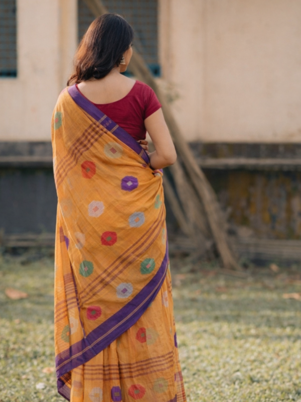 4,800.00৳​Color: Deep Purple with vibrant contrast motifs. ​Fabric: Premium Quality Breathable Cotton. ​Design: Authentic Handwoven Manipuri Buta and Traditional Temple Border. ​Occasion: Perfect for Office Wear, Festive Gatherings, or Casual Elegance. -