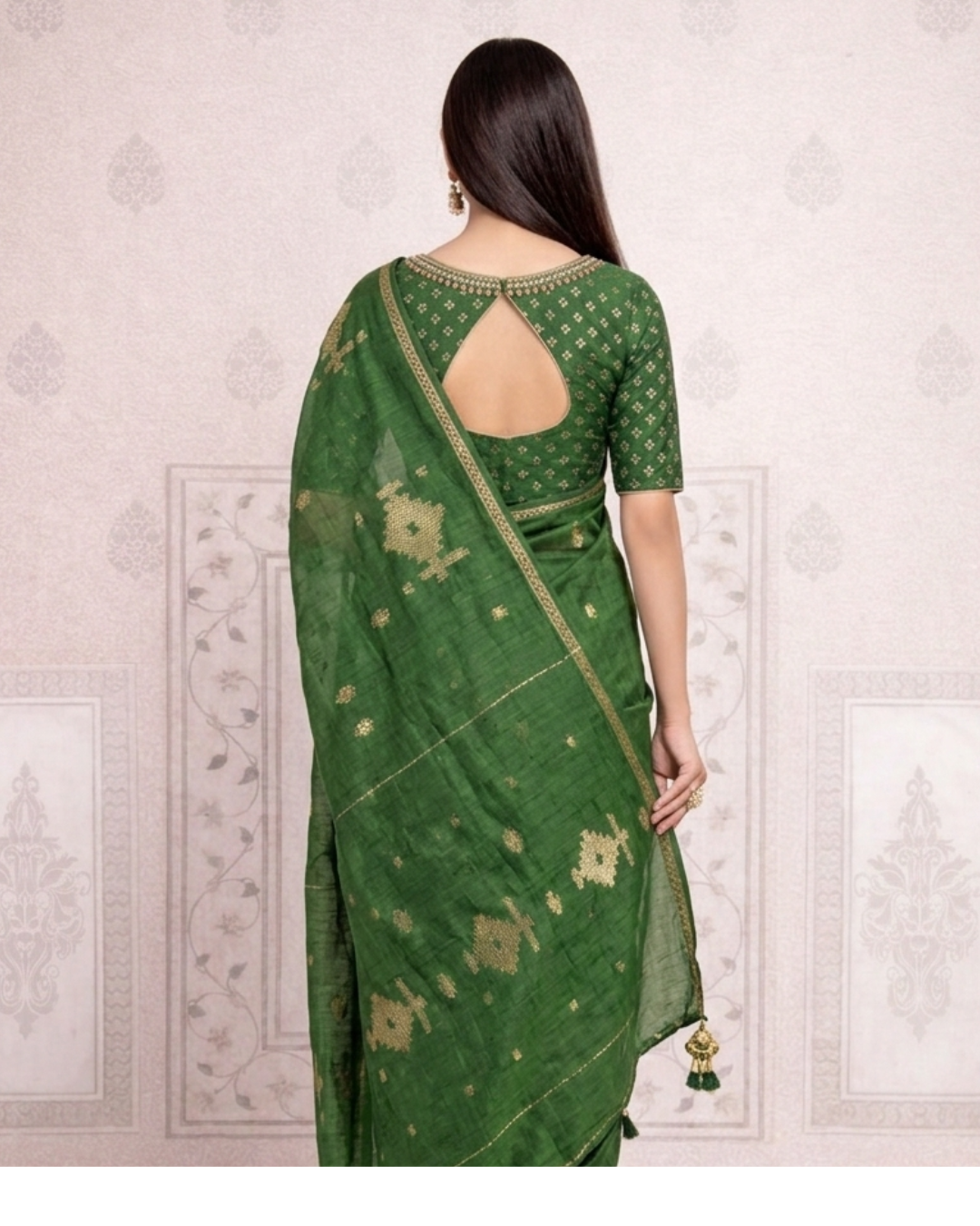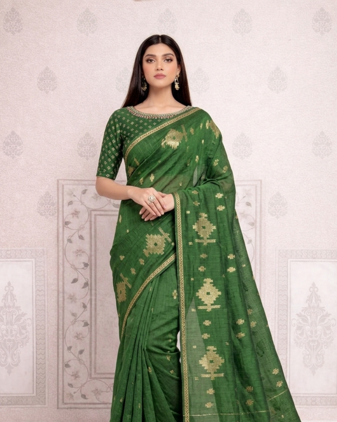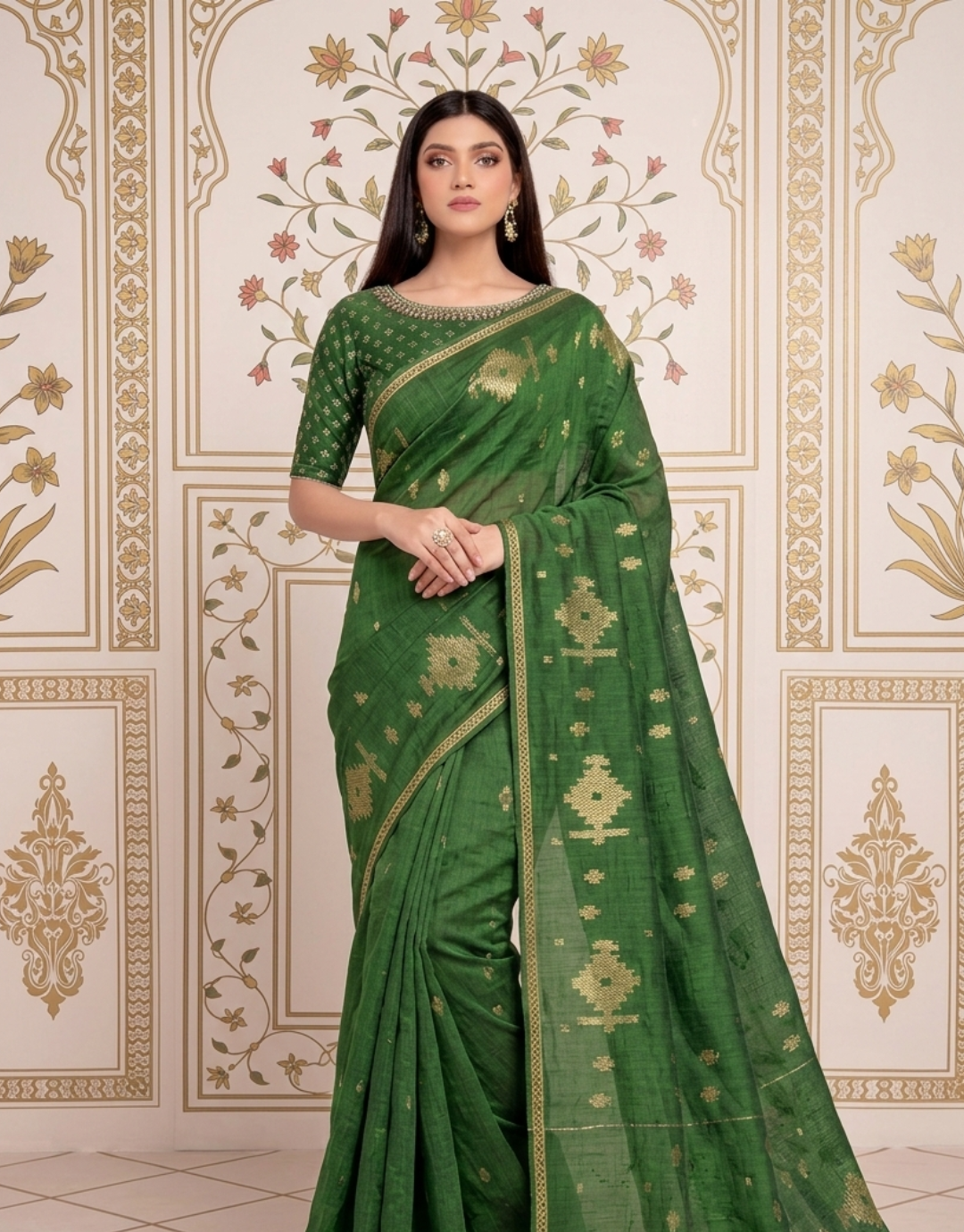 Royal Heritage: The Deep Bottle Green Dhaka Jamdani