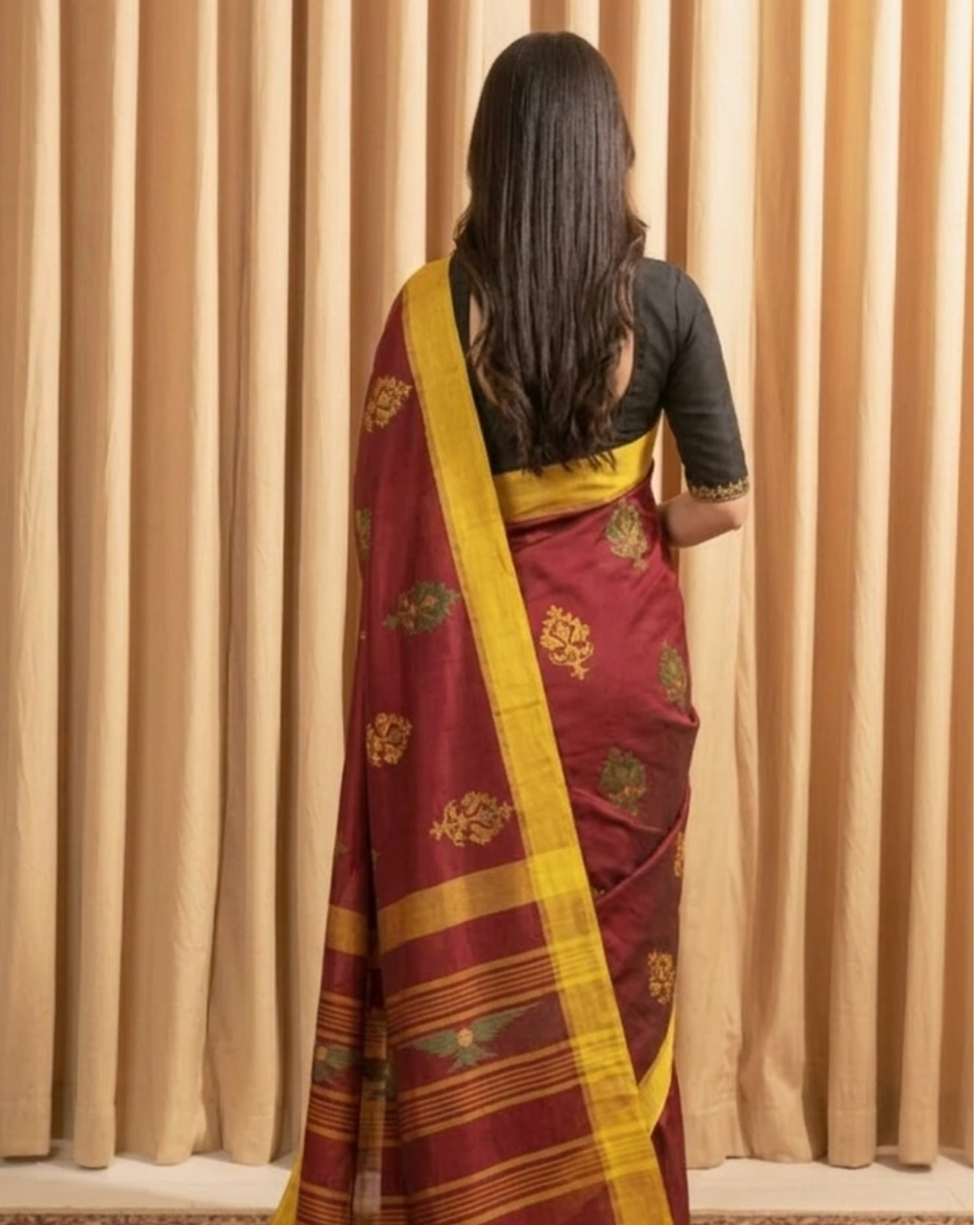 • Dry cleaning is recommended to maintain the shine of the saree