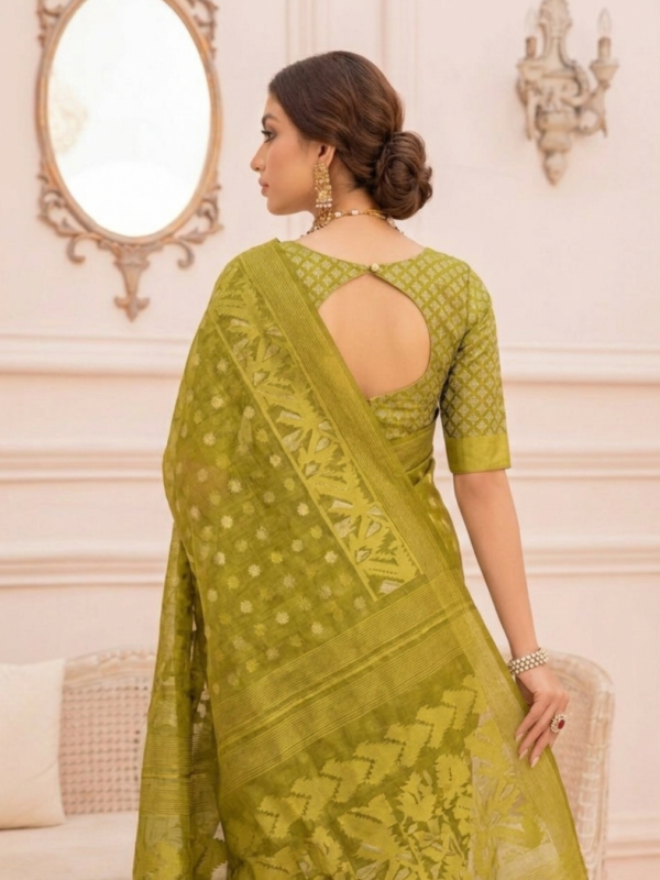 Royal Olive Green Handloom Half Silk Jamdani Saree